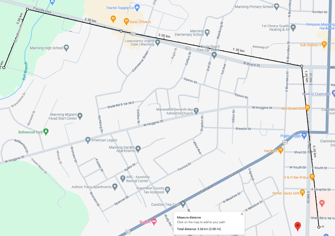 - Once done, a line will be drawn between the points, and the total measured distance will be displayed at the bottom of the screen.