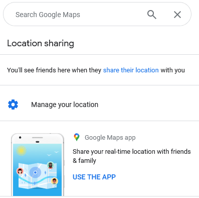Once we enter the platform, we find ourselves on the home screen, where a search is usually performed. In our case, we won’t perform any searches as we want to share our current location. To do this, we need to go to the upper-right corner of the screen, where we can see, right next to the search bar, a large letter. This is the profile button, and we need to press it to move on to the next step.